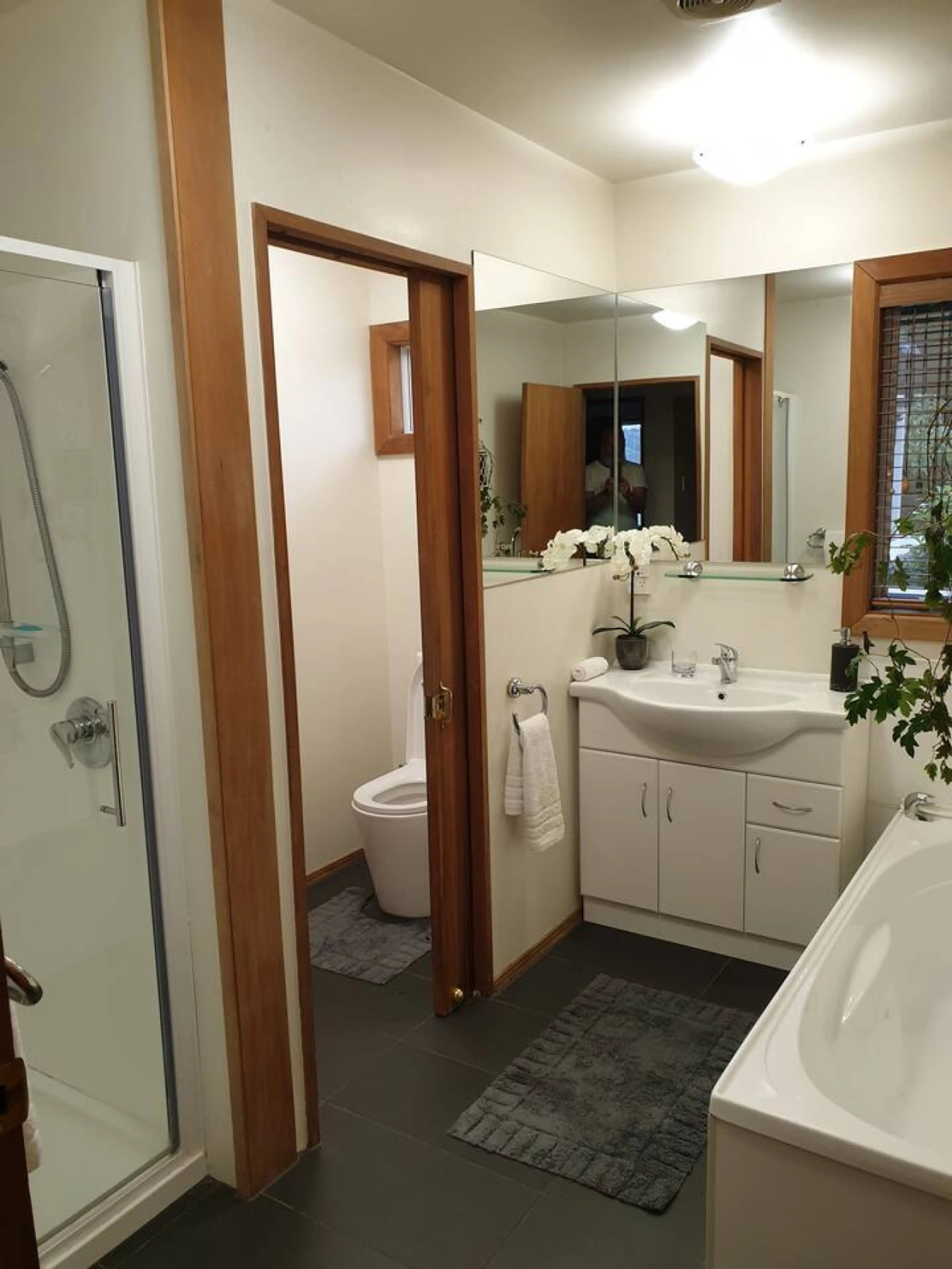 One of two sunny Rooms on 1st floor withs it's own Ensuite. There is a shared Stair access from house main front door. Your Room has views of surrounding farm land, harbour, CBD with a small Coffee\Tea making facility. You have your own room and share a full size Bathroom with one other room. Guest...